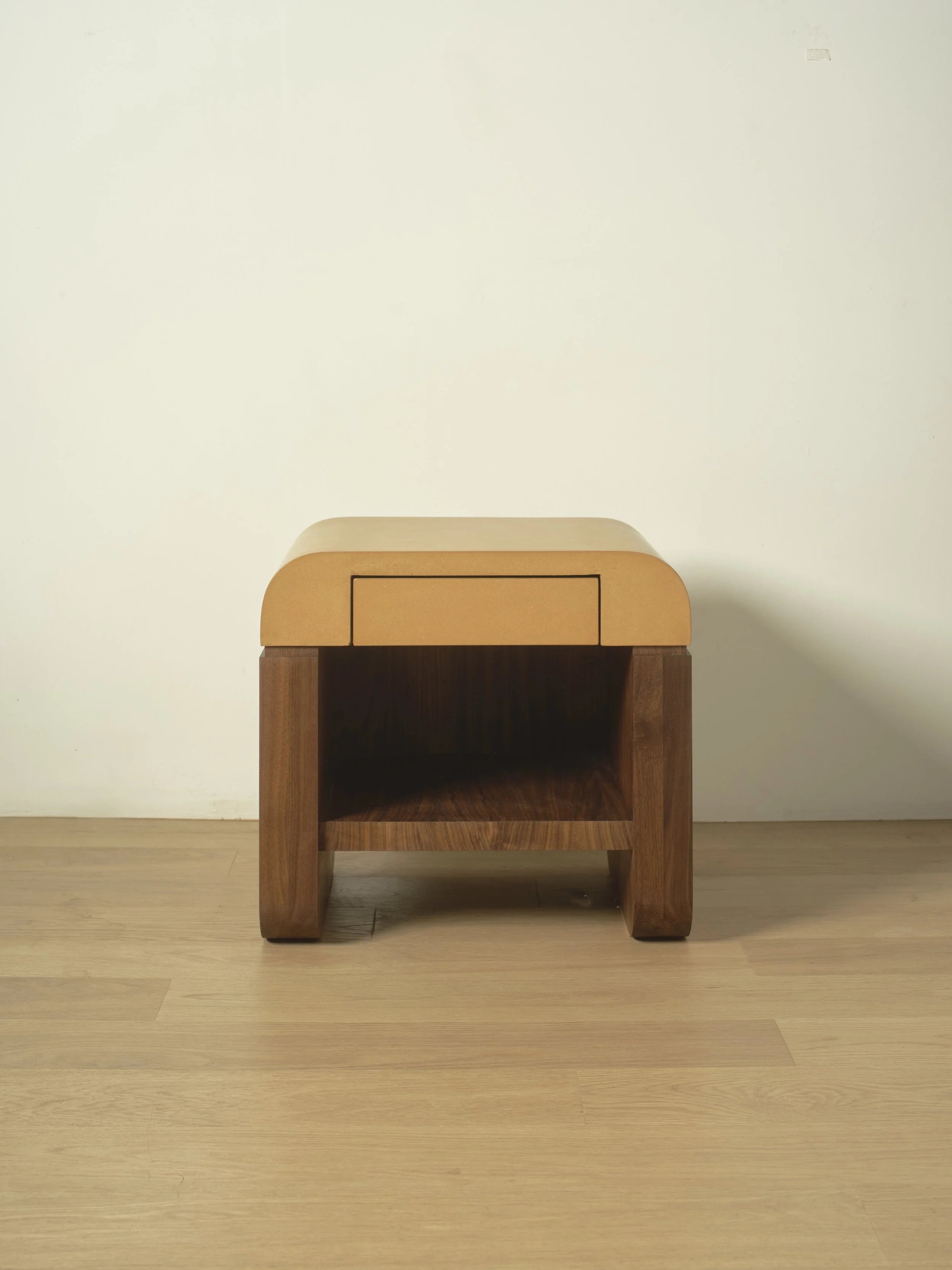 HOME Eric Weil Concrete top resting on a beautiful walnut base, a drawer for all the things you’d rather not look at before bed, and a shelf for books. Title: RadialCategory: NightstandDimensions: 20"H x 22"W x 18"DConcrete and Walnut Wood BUY BUY next next previous previous