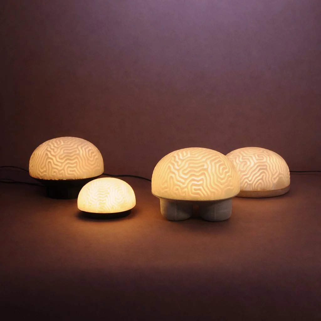 These lights show how nature can express both unification & diversity. Identical shades take on different meanings with each base of varying materiality, inspired by realms of animal life, plant life, and natural formations.