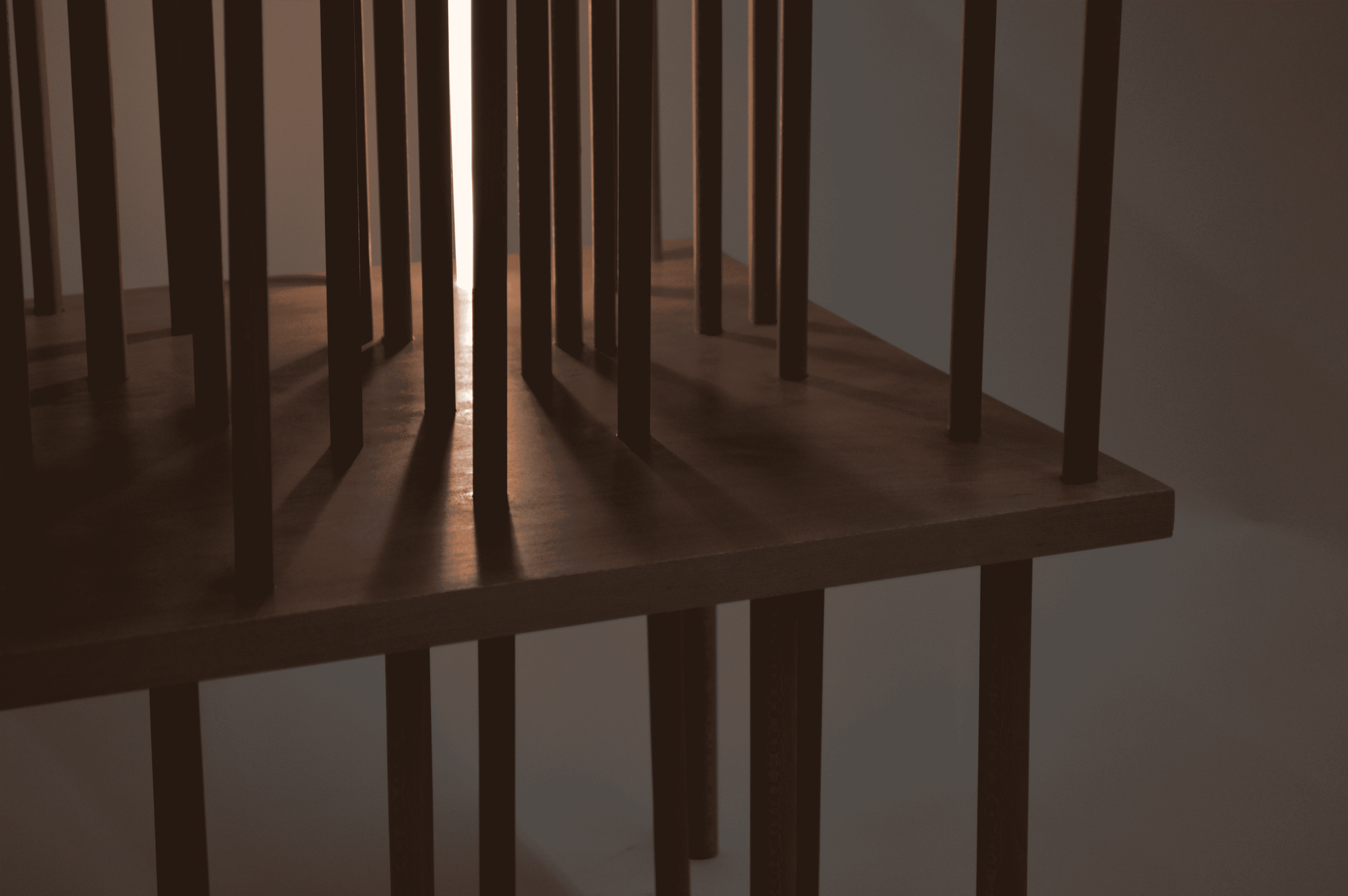 A nightstand shaped as an invitation of the forest into the home, where wood feels still alive, holding intimate objects and turning the bedside into a space of warmth, shelter, and quiet connection.